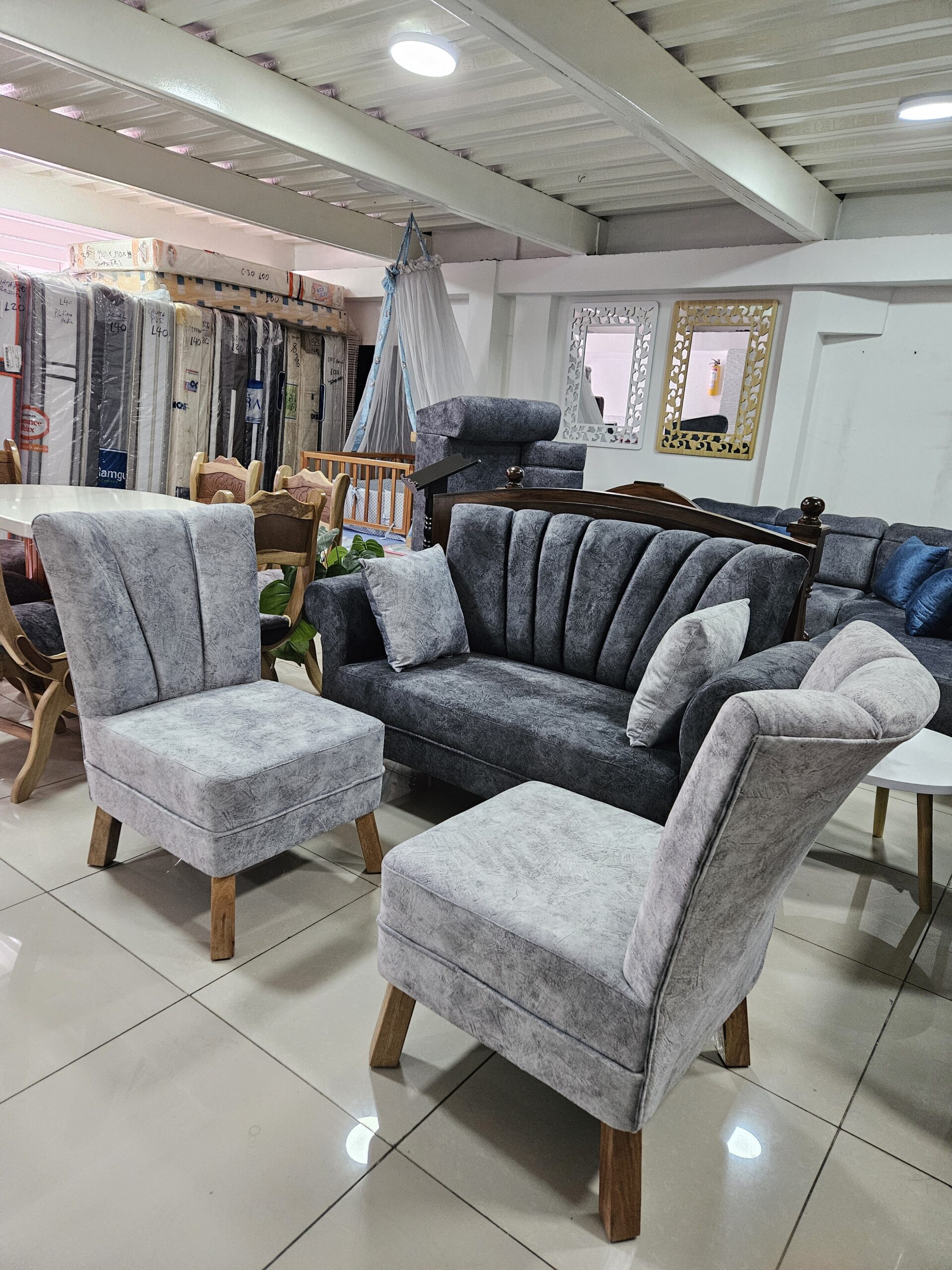 La Sala Trebol consta de dos sillas, sofa y mesa de centro puedes escoger el estampado que más te guste.